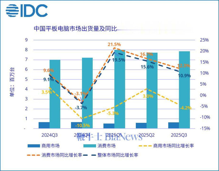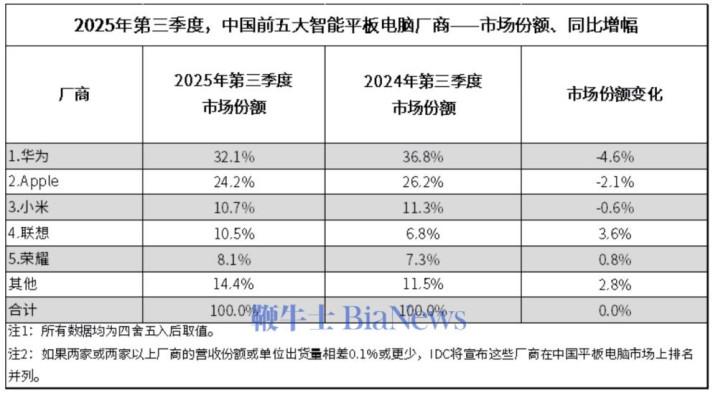 11月10日汇盈配资,近日,国际数据公司(IDC)发布了2025年第三季度中国平板电脑市场季度跟踪报告。